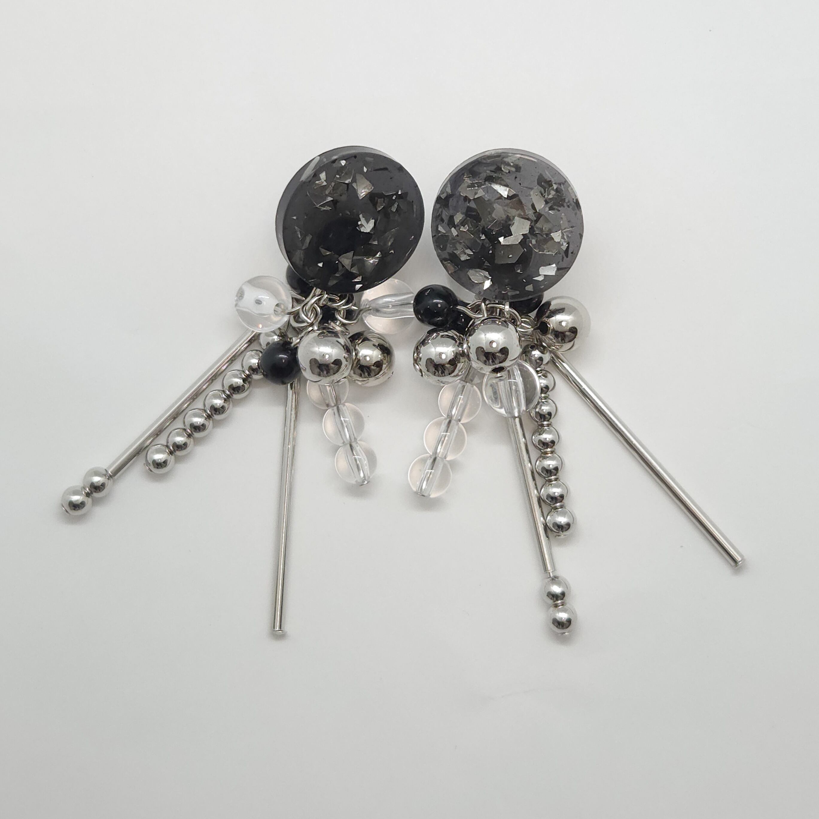「バブル」のようにあしらったミックスビーズが華やかさを添えるイヤリング。lifple,で人気のデザインです。モノトーンなカラーでさまざまなコーデにマッチします。