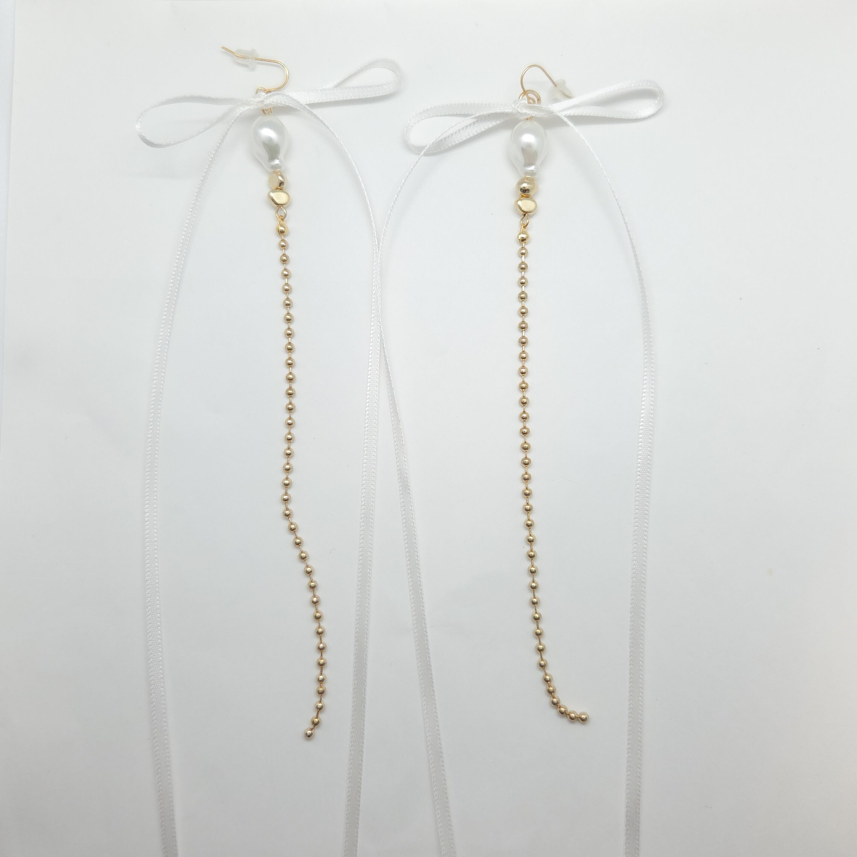 リボン×チェーンの組み合わせで甘すぎず楽しめるデザイン。ロング丈で着けるだけで耳元が華やかな印象に。カジュアルなコーデに取り入れればアーバンな雰囲気をプラスしてくれるアイテムです。